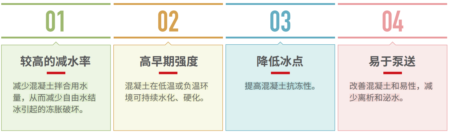 使混凝土在負溫下硬化、提高混凝土抗凍性、改
